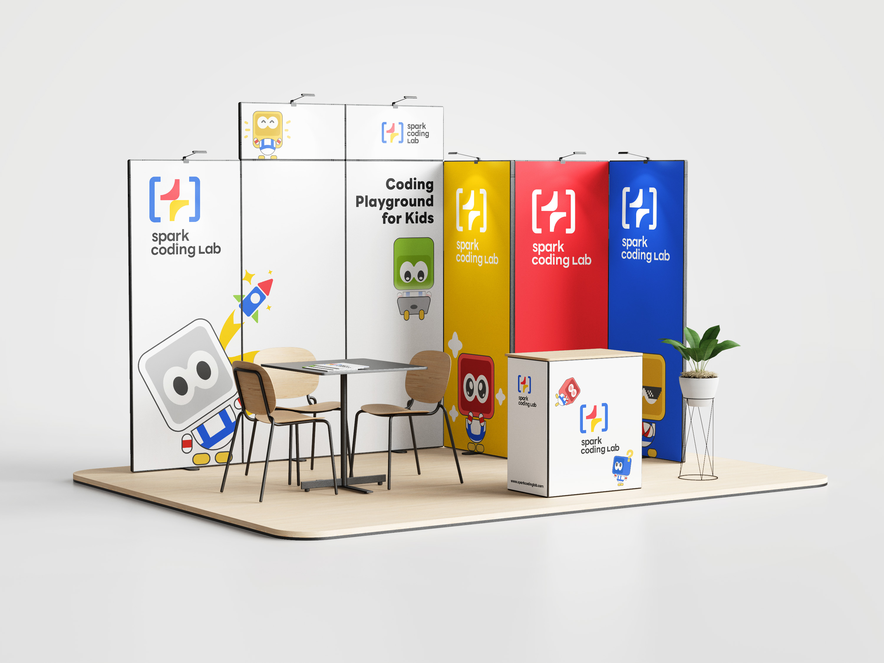 Using ideas from non-living forms such as blocks or jigsaw pieces that can be assembled. From this, we created a character named “Mr. Spark”, inspired by the spark symbol in the logo.